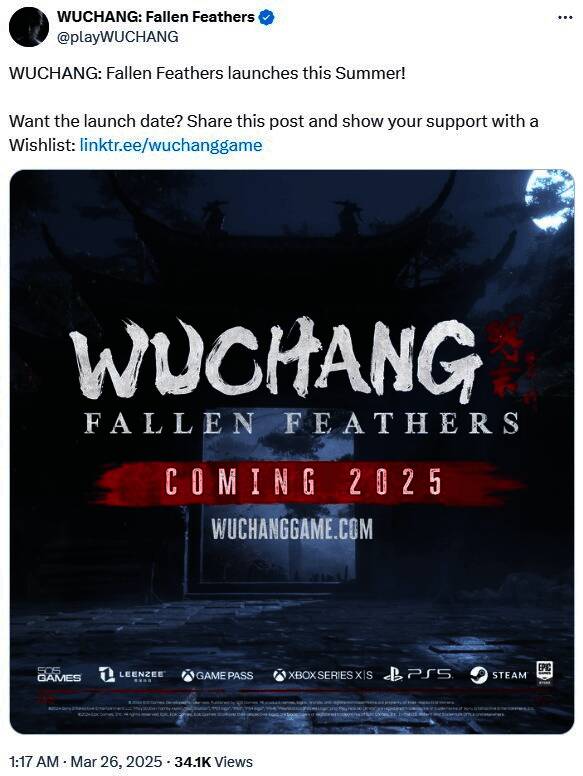 《明末:渊虚之羽》是今年最受期待的类魂游戏之一。该作以与《星刃》伊芙相似的女性主角为特色,游戏灵感来自《黑暗之魂》和《忍者龙剑传》。近日官方发推文宣布,《明末》将于 2025年夏季发售,登陆PS5、XSX|S、Steam和Epic。