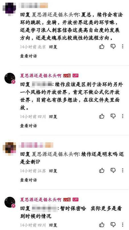 值得一提的是,制作人夏思源在B站上回复玩家评论时,谈及续作计划。他表示:“续作应该是区别于《艾尔登法环》的另外一个风格开放世界,肯定不做公式化开放世界,目前也有很多想法,在往文件夹里面放”。此外不确定续作是否延续“明末”的IP,要看之后的情况。