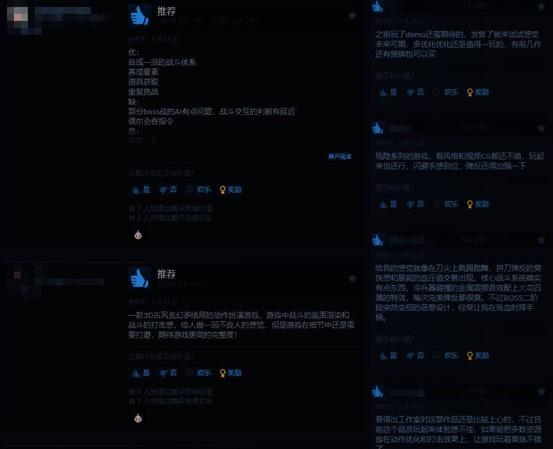 给予差评的玩家认为游戏没怎么优化,部分BOSS战AI有点问题,战斗交互判断有延迟,剧情打斗声音单一等等。