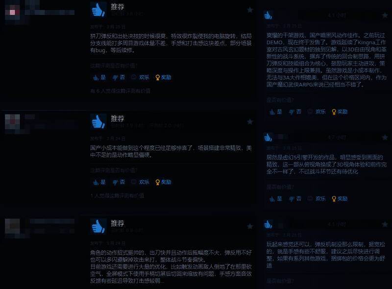 给予好评的玩家认为《琉隐神渡》动作招式挺帅,整体战斗节奏偏快。各种主动技能和被动技能组合起来,能一直连招压制对手,打得特别爽。画面质量不错,看着很舒服。