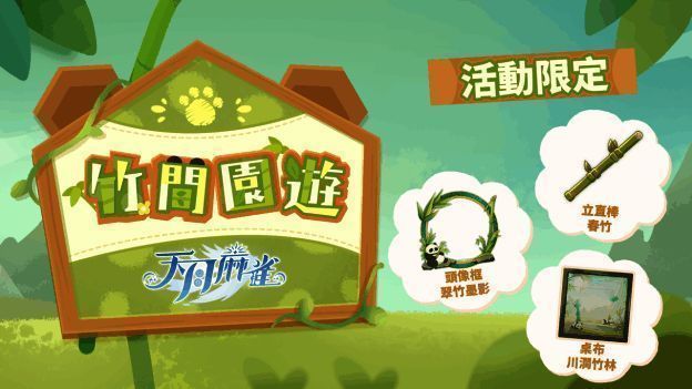 为庆祝川麻段位开放,以四川熊猫为主题的兑换活动——「竹间园游」亦于今天开跑。玩家可透过完成活动任务,免费兑换多款可爱的熊猫主题装饰物,包括首款免费兑换的桌布「川涧竹林」。用于快速觉醒雀士的「觉醒星尘」亦可在本次活动免费兑换。