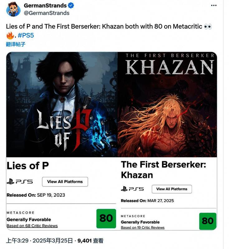 此外,游戏还获得了海外媒体的一致认可,和去年发售的韩国动作游戏《匹诺曹的谎言》一样,二者在Metacritic上的评分都达到了80分。