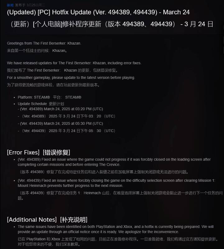 Neople社区经理binpark近日在Reddit发帖宣布,针对已购买豪华版的抢先体验玩家,现已推出两项热修复。更新主要解决了载入界面中途退出导致进度锁死的问题,该问题严重影响了主线剧情推进。Steam版更新已发布,官方建议玩家尽快升级。