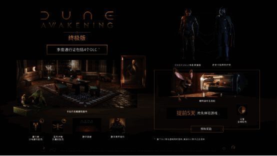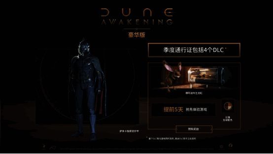 季度通行证:包括4个DLC。首个DLC将包含几款从厄拉科斯野生动物中汲取灵感的可放置物品,包括夏胡鲁本体。接下来的3个DLC将于之后推出。