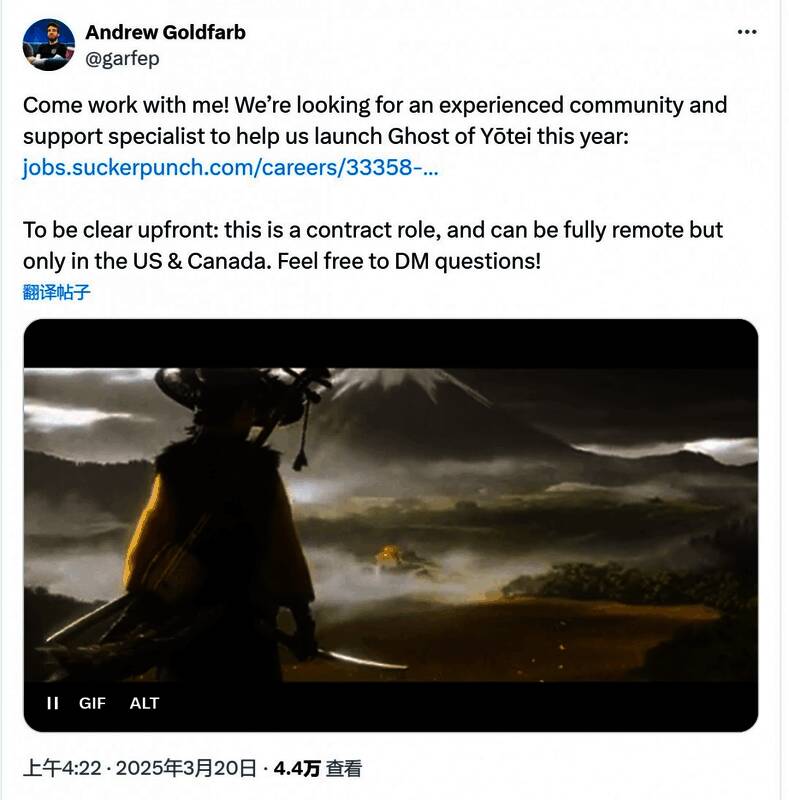 根据Sucker Punch的资深沟通经理Andrew Goldfarb在X上发布的一则招聘信息,《羊蹄山之鬼》将于2025年发售。