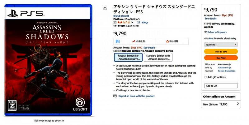 不出意外,以封建日本为背景的《刺客信条:影》在日本当地的评价很差,在零售网站亚马逊日本上,PS5版用户评分2.2分,共有23条评价,反映出日本玩家几乎没有人买这款游戏。