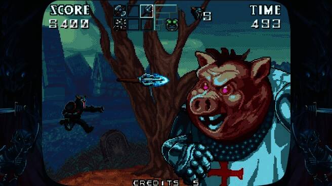 就像在老式街机游戏中一样,你在失去一条生命之前只能被击中两次。第一次被击中时,你会失去盔甲,但你可以穿着内衣继续与邪恶势力战斗!然而,如果你再次被击中,你就会悲惨地失去一条生命。失去一条生命会让你回到关卡的起点,或者如果你已经到达了……检查点,就会回到检查点。要小心“游戏结束”的情况……