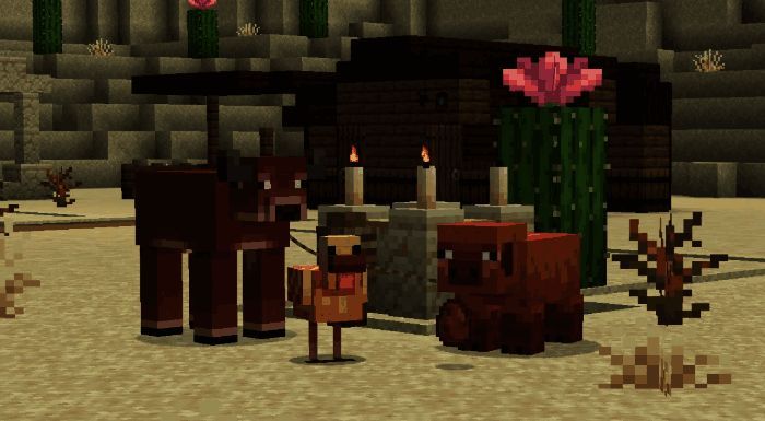 ·追加上线的新要素包括落叶、仙人掌花等等,追加热带以及寒带出现的猪、羊和鸡的新品种,新的类型方块以及建筑,可以升级进化成最多同时搭乘4人的心飞控载具等等。