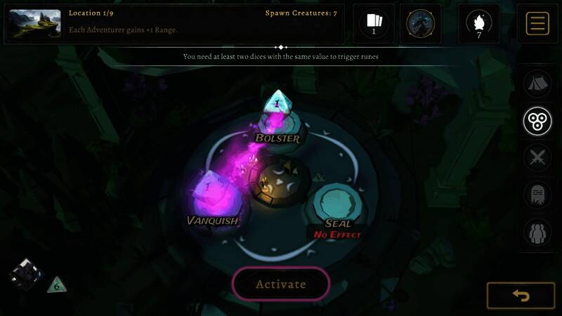 明智选择行动——治疗、侦察、装备或点燃营火。你会立即释放强大魔法符文,还是为后续战斗保留最佳骰子?