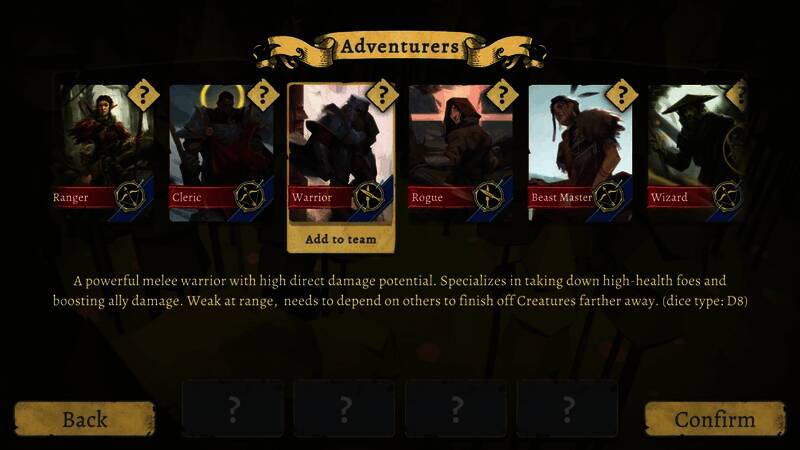 出发前挑选队伍成员。从六位技能各异的冒险者中组建最强阵容,或尝试不同组合。你会用蛮力战士碾压敌人,用巫师魔法智取对手,用驯兽师驾驭森林生物,还是以牧师身份在圣光中坚守?