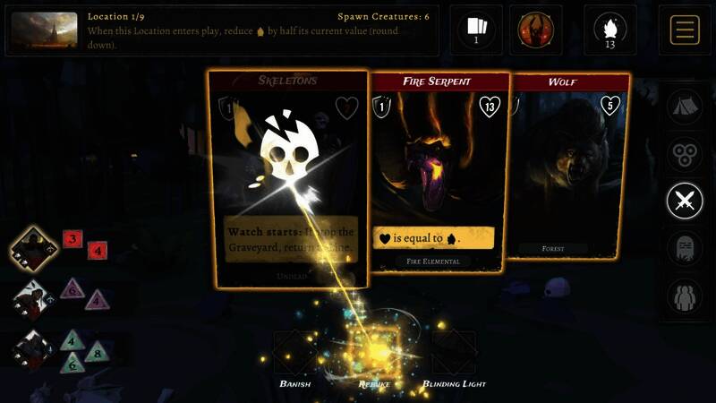 运用特殊技能对抗怪物。可直接用骰子攻击或激活对应能力。每个法术的释放时机都是生存关键,谨慎选择行动——失误可能葬送整局!