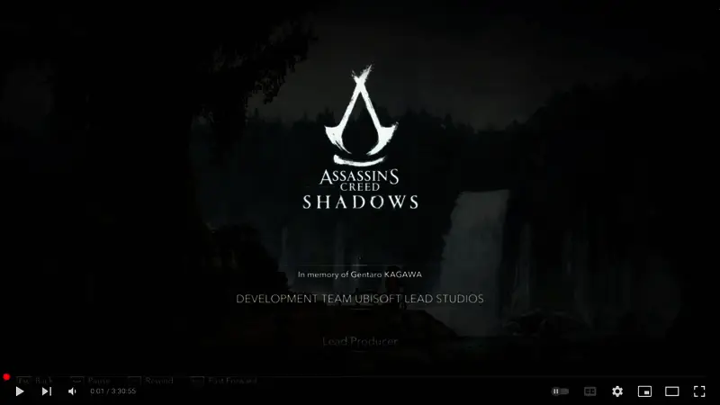 作为参考,统计游戏职员表时间的 Video Game Credits 发布的《刺客信条:影》职员表全程视频长达 3 个半小时。作为参考,该视频制作者的最近其他游戏职员表视频时长分别如下: