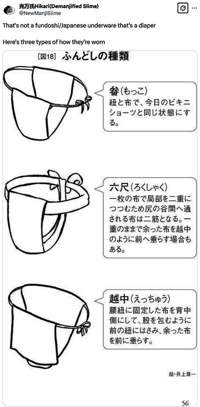 国外网友吐槽奈绪江的内裤造型像是“尿布”,完全不像日本历史上的女性正常穿搭,甚至还列举了三种可能的(历史上的内衣样式)来对比。
