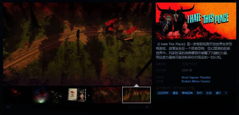 今日(3月21日),等距视角开放世界生存恐怖游戏《I Hate This Place》Steam页面,预计于2025年发售,游戏支持简体中文,感兴趣的玩家可以点击此处进入商店页面。