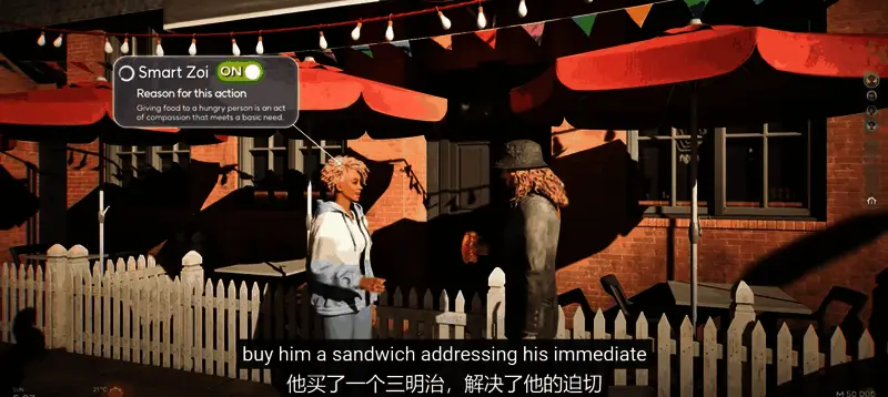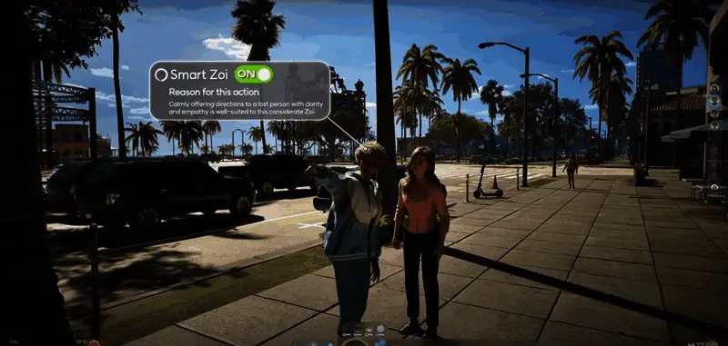 英伟达表示:《inZOI(云族裔)》玩家可以通过激活“智能Zoi”实验性功能设置,将城市的NPC转化为具有更高人工智能水平的ACE自主游戏角色。这些NPC会能够根据自己的个性更好地适应和智能地应对环境。例如,一个体贴的智能NPC可能会决定帮助一个迷路的角色指路,或者向一个饥饿的陌生人提供食物。而在每天结束时,他们会根据自己的经历调整个人活动日程,进一步提升游戏体验。