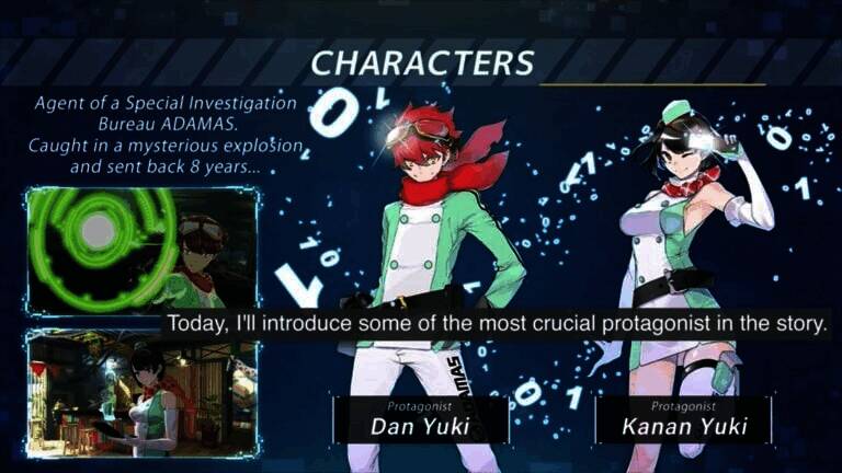 陷入一场神秘的爆炸,被送回了八年前……这两个角色是之前的预告片中出现的主角,他们都是秘密组织ADAMAS的特工,专门调查和解决异常现象。事实上,他们是整个组织中最有潜力的二人组。在这款游戏中,玩家将在开始时控制他们选择的角色,而另一个角色将作为他们的操作员,提供来自组织总部的指示和建议。