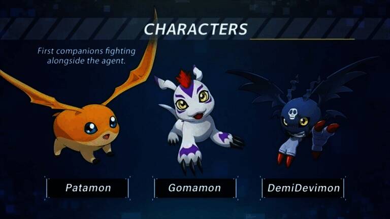 在游戏开始时,玩家将获得巴达兽, 哥玛兽或小恶魔兽作为他们的队友。玩家将选择这三种中的一种,由秘密组织ADAMAS提供。