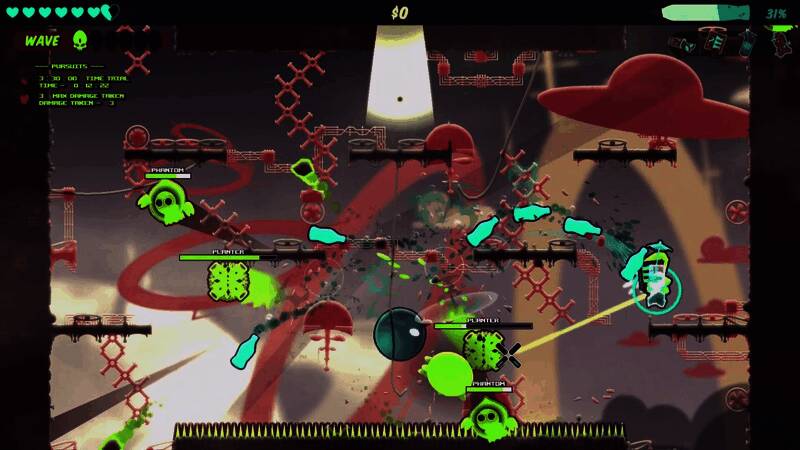 使用各种近程、远程和近战“武气”来消灭外星入侵者。 扔“手榴罐”、用苏打喷气背包、或整台自动售货机将它们压扁! 磨练你的技能来躲避并击败18种不同类型的敌人。