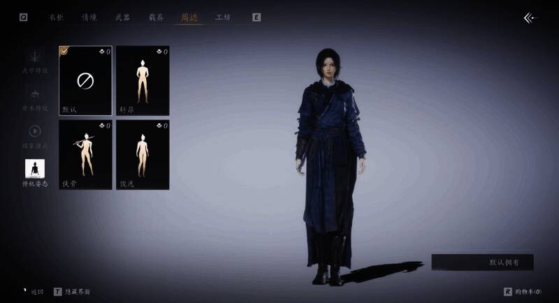 3月21日更新后,玩家们可以在【外观-周边-待机姿态】中对角色站姿进行设置,并将有「默认」、「轩昂」、「侠骨」、「俊逸」四种姿态可进行自由选择和切换。