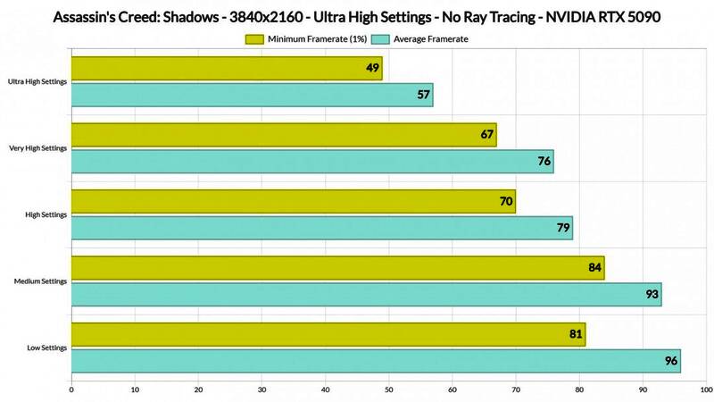 但《刺客信条:影》在AMD硬件上运行效果非常好,AMD Radeon RX 7900XTX性能表现与英伟达RTX 4090相当。至于AMD Radeon RX 9070XT,它和英伟达RTX 5080一样快。看来《刺客信条:影》PC版有优化问题。游戏在所有英伟达GPU上的表现都非常糟糕。在没光追的原生1440p下,RTX 4090无法提供稳定的60帧体验。