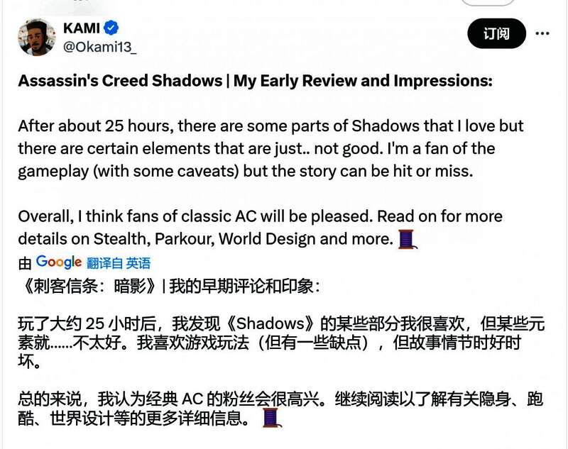 《刺客信条:影》评测解禁后,在社交媒体X上出现了大量关于该作的视频消息以及个人游玩初步感受。推主Disco分享了《刺客信条:影》的精美截图,捕捉自PS5标准版。