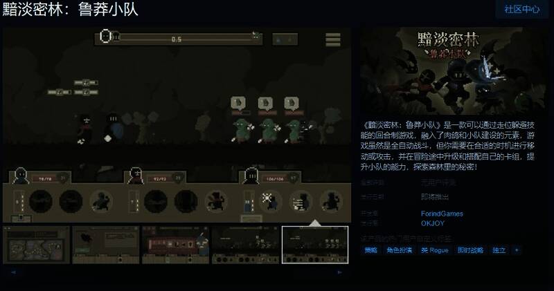 今日(3月18日),类Rogue快节奏回合制游戏《黯淡密林:鲁莽小队》Steam页面开放,发行日期待定,支持简体中文,感兴趣的玩家可以点击此处进入商店页面。