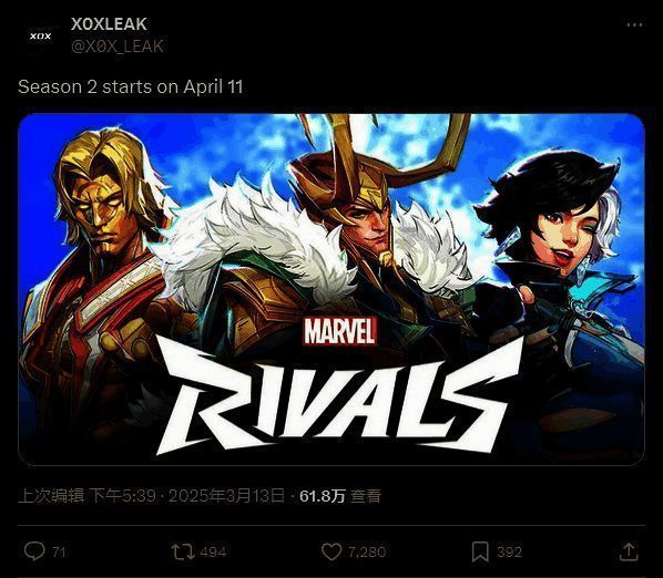 根据此前泄密消息人士 XOX_Leak 称,《漫威争锋》第二赛季或将于 4 月 11 日推出。