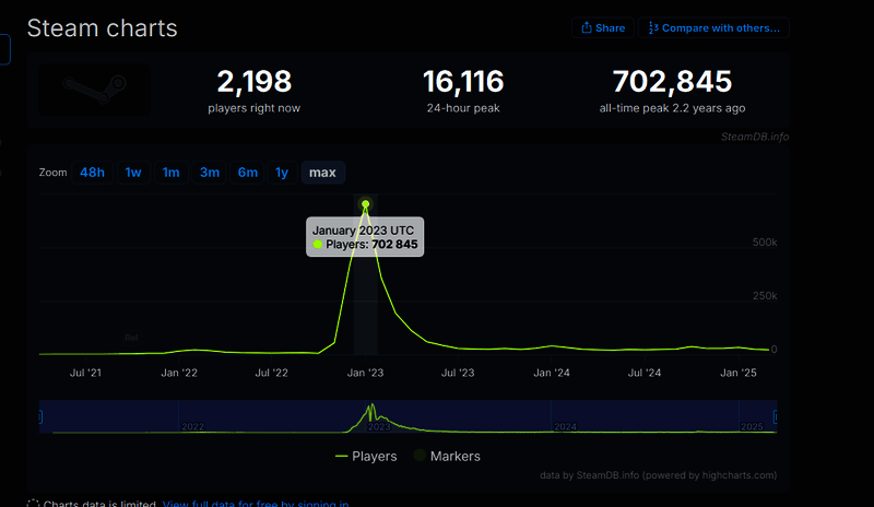不知道大家还记不记得曾经大火过的一款免费狼人杀游戏《鹅鸭杀(Goose Goose Duck)》。《鹅鸭杀》于2021年10月正式在Steam平台推出,游戏支持中文,采取免费游玩道具收费的盈利模式。在23年一月份,该游戏Steam同时在线玩家数已突破70万,而且其中大部分玩家都来自中国。