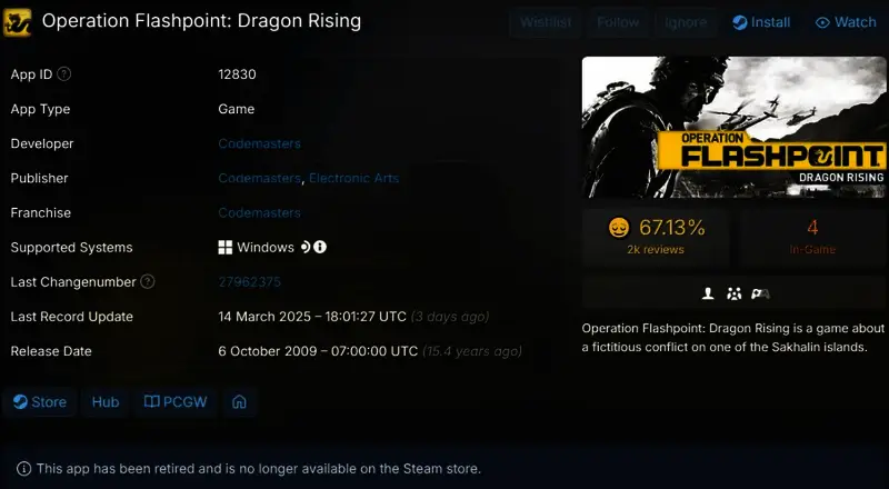 在2021年,EA公司就以12亿美元的高价收购了开发商Codemasters,现在,作为EA旗下的Codemasters近期有多款游戏在Steam上被下架,这些全是Codemasters在被收购前开发并发行的经典游戏。