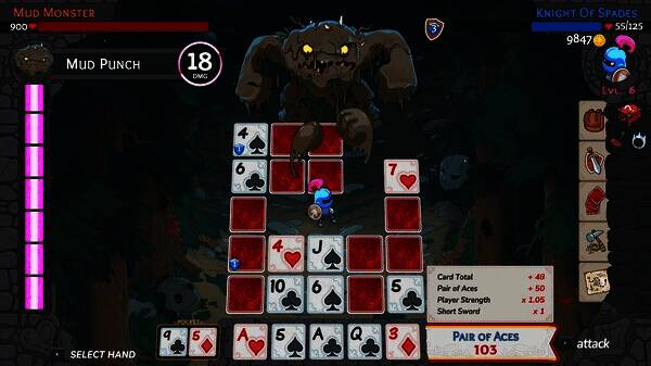 本作将扑克、角色扮演游戏(RPG)和Roguelite游戏融合在一起,创造出了最疯狂的单人冒险。成为黑桃骑士,在卡杜亚的土地上建立你的声望!通过在棋盘上移动来收集卡片,用你抽到的牌组成最好的扑克牌组合,与疯狂的怪物展开对抗。