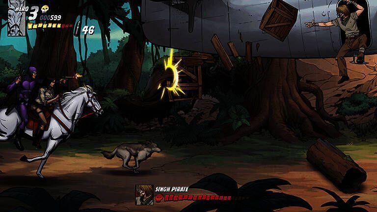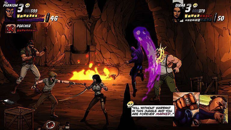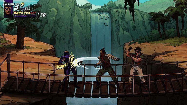 《幻影》是一款街机风格的打斗游戏,即将登陆PC和游戏机。在这个14级的冒险中,扮演幻影或他的搭档戴安娜·帕尔默。辛格兄弟会令人恐惧的海盗正在争夺权力,威胁着幻影的遗产,而阻止他们的重任就落在了你的身上。使用你的徒手搏击技能和可靠的武器来消灭这个邪恶势力,并向你的动物朋友——猎鹰弗拉卡和狼魔鬼寻求帮助。《幻影》讲述了一个由King Features批准的全新故事。通过全屏场景和迷人的游戏内视觉效果体验这一经典作品,这些视觉效果由经验丰富的漫画家和Art Of Play专门的内部2D创意团队手绘和逐帧动画。
