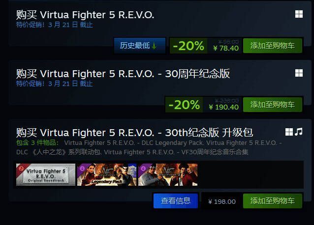 《VR战士5 R.E.V.O》日前正在Steam促销中: