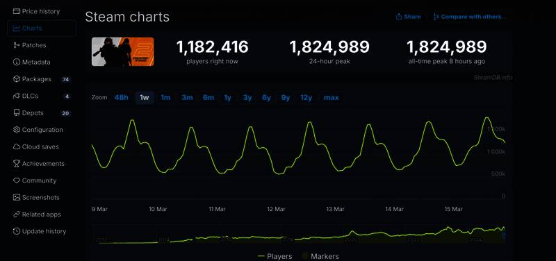 同时,《反恐精英2》也超过了《CS:GO》保持的记录(181万8773人),《CS:GO》在发售13年后创下历史新高。《CS:GO》之前的181.8万名同时在线玩家纪录自2023年5月起一直保持至今,但《CS2》终于成功超越了这一纪录。
