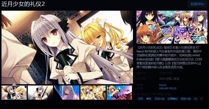 今日(3月15日),橘子社作品《近月少女的礼仪2/Tsuki ni Yorisou Otomeno Sahou 2》Steam页面上线,预定2025年第二季度发售,游戏支持简繁体中文,感兴趣的玩家可以点击此处进入商店页面。