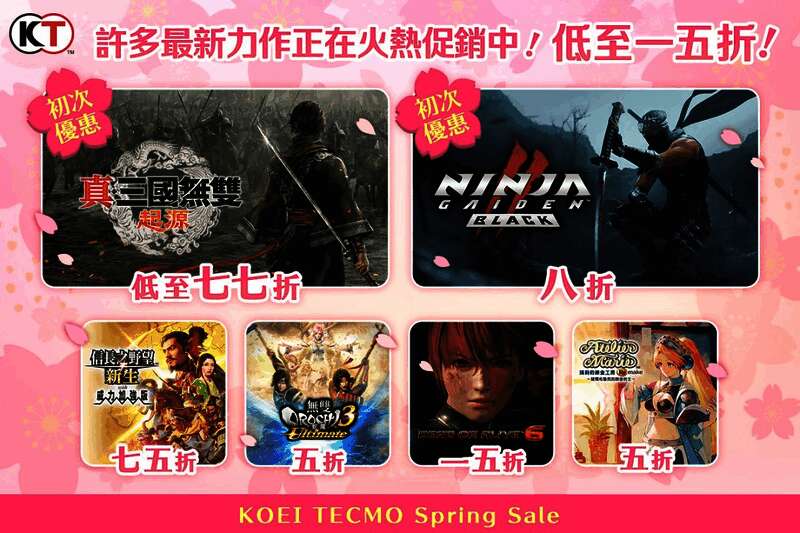 台湾光荣特库摩宣布,于Microsoft Store、PlayStation™Store、Steam®好评发售中的光荣特库摩人气游戏作品,举办最低1.5折起的KOEI TECMO Spring Sale 2025。