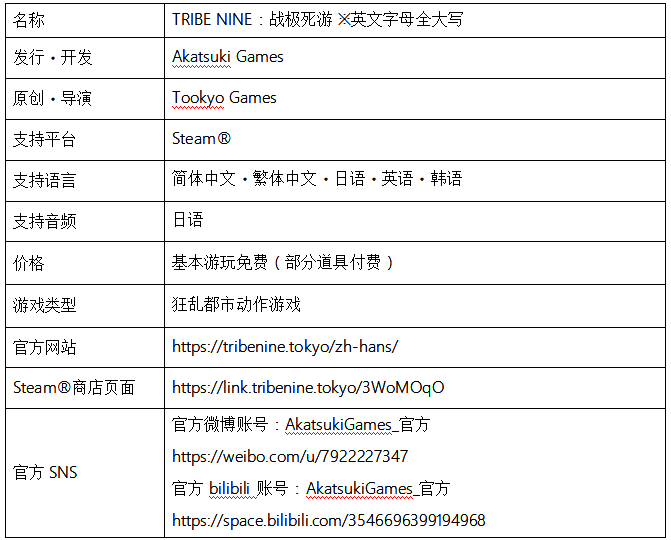 Akatsuki Games Inc.(总部:东京都品川区,代表董事兼CEO:户塚佑贵,为日本Akatsuki Inc.的全资子公司)旗下的狂乱都市动作游戏“TRIBE NINE:战极死游”(以下简称“战极死游”)宣布,截至目前全球下载量已突破1000万。