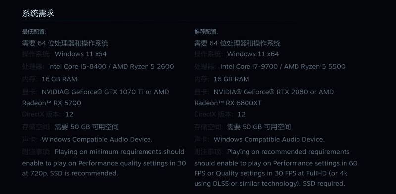 《寂静岭》系列全新作《寂静岭f》Steam页面公开了该作的PC配置需求,最低配置GTX 1070Ti,推荐配置RTX 2080显卡。硬盘方面需要50GB硬盘空间,综合来看,中规中矩。