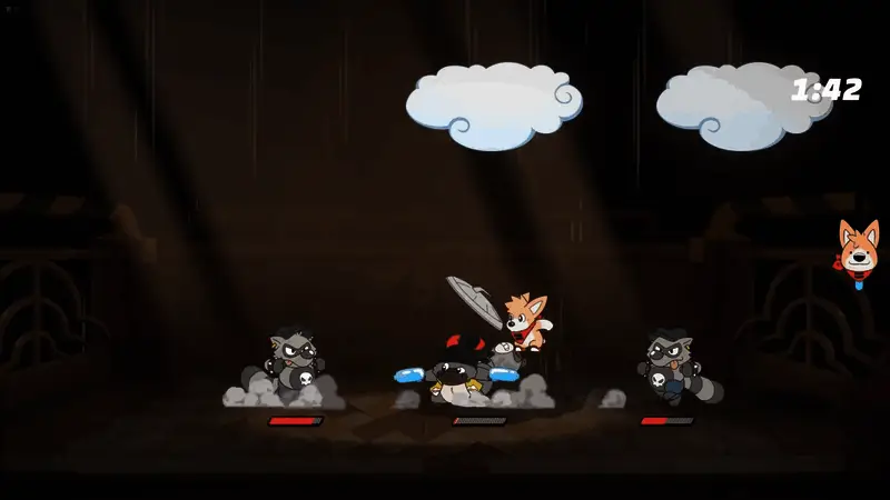 玩家们扮演一条活泼的柯基犬布雷兹,奔跑跳跃,进入由动物们掌控天气的云端世界,学习并掌握天气之力。积蓄狗狗大招,用连招不断的2D乱斗动作与各种元素之力展开激烈的对决吧!