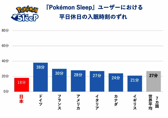 3月14日是世界睡眠日,众多为了游戏废寝忘食的玩家们究竟这样分布呢?任前《宝可梦Sleep》官方进行了玩家调查,结果显示日本玩家时长最短,但是最符合健康规律。