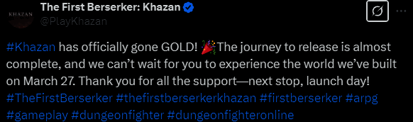 3月12日今天,NEXON旗下新游《第一狂战士:卡赞》官方宣布制作完成,所有制作人集结庆祝游戏杀青,玩家即将在稍后的3月27日迎来游戏的正式发售,敬请期待。