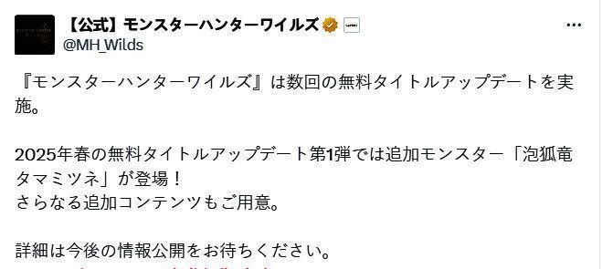 《怪物猎人:荒野》官推宣布,将推出多个免费的更新。