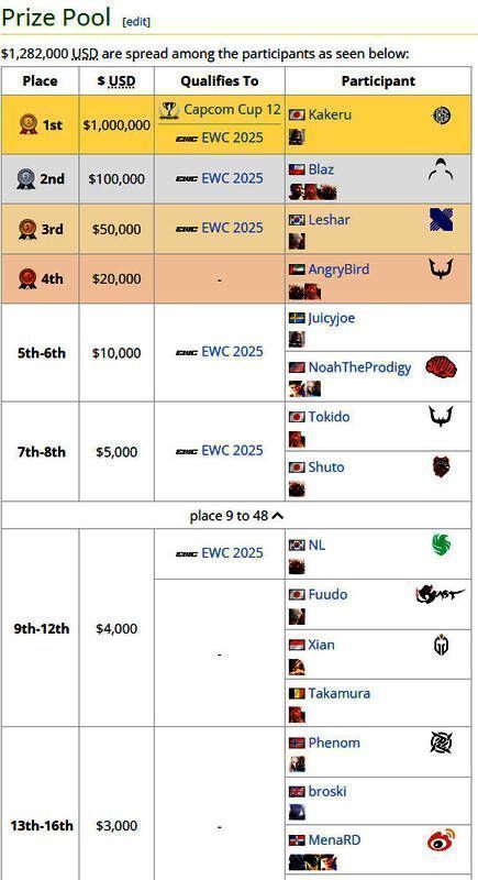 Capcom杯是所有格斗游戏中冠军奖金最高的,高达100万美元。但亚军奖金差距非常大,只有10万美元,因此总决赛的对决实际上是一场价值90万美元的奖金战。不到15分钟的游戏时间就决定了谁将带着近百万美元的财富离开。