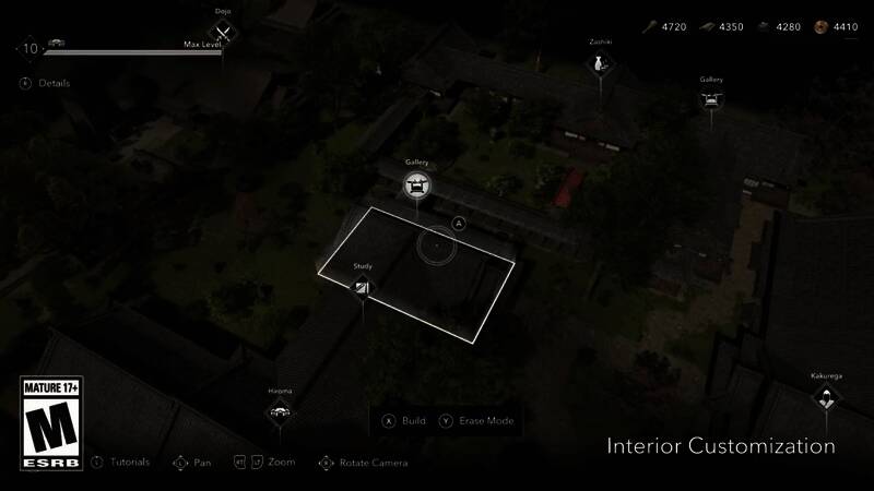 主房间包括主屋、马厩(管理侦察兵走私库存)、隐居处(在日本各地宣称安全屋)、锻造厂、书房和道场。