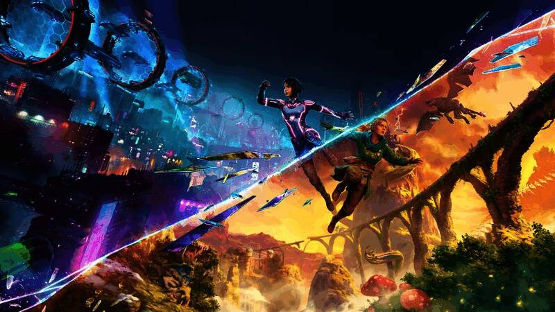 《双影奇境》讲述的是米欧和佐伊是两位风格不同的作家,她们一个擅长科幻小说,另一个专注于奇幻题材。被骗进入一台意在窃取创意的机器后,她们陷入了自己创作的故事之中。她们必须相互依靠,保护自己的记忆不受侵害,进而赢得自由;同时她们还必须共同努力掌握各种技能,在科幻与奇幻的世界间穿梭,在意外萌生的友情中共同克服挑战。