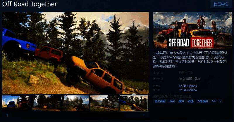 今日(3月7日),越野冒险游戏《一起越野》Steam页面开放,2025年第二季度发售,游戏支持简繁体中文,感兴趣的玩家可以点击此处进入商店页面。
