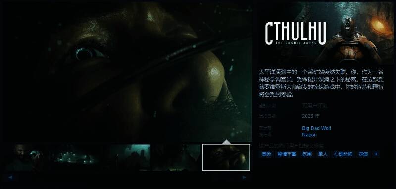 今日(3月7日),冒险游戏《Cthulhu: The Cosmic Abyss》Steam页面上线,预定2026年发售,游戏暂不支持中文,感兴趣的玩家可以点击此处进入商店页面。