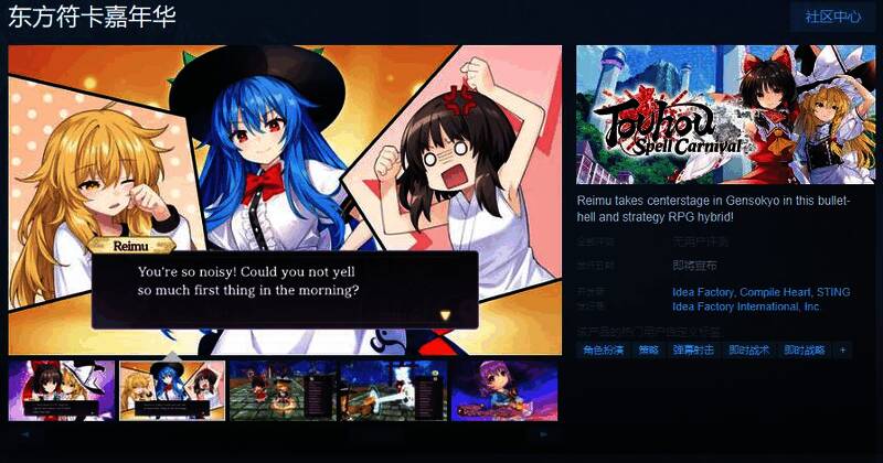 今日(3月6日),弹幕射击策略RPG《东方符卡嘉年华》Steam页面开放,发行日期待定,游戏暂不支持中文,感兴趣的玩家可以点击此处进入商店页面。