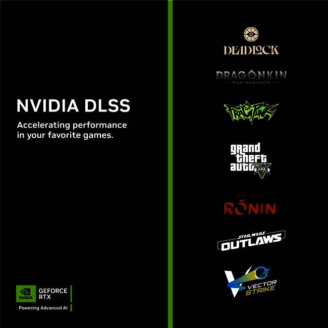 全新多人战术射击游戏《界外狂潮》(FragPunk)首发将支持DLSS 4多帧生成,《星球大战™:亡命之徒》(Star Wars™ Outlaws)在最新RTX视频中展示了DLSS 4增强效果。《龙的传人:孤旅》(Dragonkin: The Banished)和《浪人崛起》(Rise of the Ronin)在发布时支持DLSS帧生成和DLSS超分辨率。VectorStrike在3月4日已开启抢先体验,支持DLSS帧生成和DLSS超分辨率。Deadlock和《侠盗猎车手 V》(Grand Theft Auto V)现已在PC版支持DLSS和Reflex。