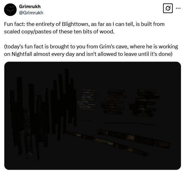 FromSoftware经典游戏《黑暗之魂》难度极高,“病村”更是许多玩家的恶梦。近日Mod作者Grimrukh发现,这个地图竟然是由10种不同的木头3D模型复制粘贴而成。