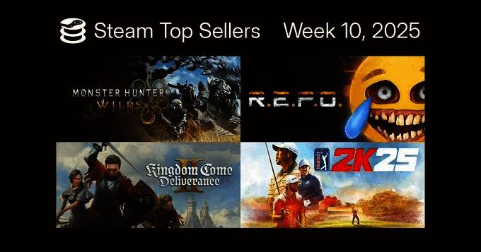 Steam 2025年最新一周游戏销量排行榜出炉(2025年2月25日-2025年3月4日,无免费游戏),本周《怪物猎人:荒野》再次登顶,已经达成两连冠,新发售的在线合作恐怖游戏《R.E.P.O.》也登上了榜单,位于第三。
